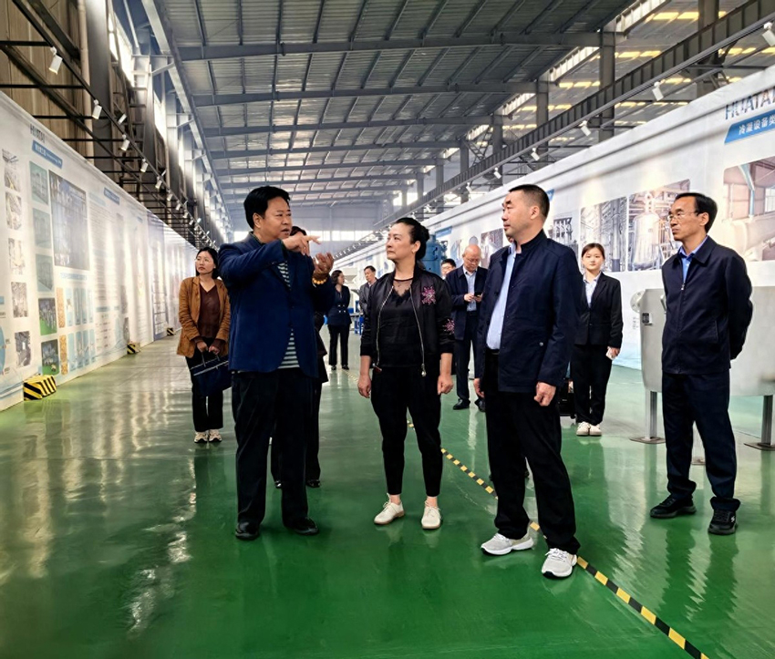 漯河市人大常委會(huì)考察組領(lǐng)導(dǎo)蒞臨華泰集團(tuán)調(diào)研 10月12日上午,漯河市人大常委會(huì)考察組有關(guān)領(lǐng)導(dǎo)蒞臨河南華泰智能裝備集團(tuán)考察調(diào)研科技成果轉(zhuǎn)化工作經(jīng)驗(yàn)。安陽(yáng)市人大常委會(huì)教科文衛(wèi)工委主任李文濤,滑縣人大常委會(huì)副主任王敏及滑縣有關(guān)領(lǐng)導(dǎo),河南工業(yè)大學(xué)教授、中原食品實(shí)驗(yàn)室首席科學(xué)家畢艷蘭,中原食品實(shí)驗(yàn)室副主任陳歷水,河南省人大代表、中國(guó)糧油學(xué)會(huì)油脂分會(huì)副會(huì)長(zhǎng)、華泰智能裝備集團(tuán)董事長(zhǎng)閆子鵬陪同調(diào)研。