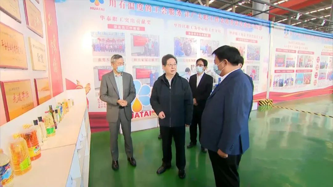 河南省委書記樓陽生蒞臨華泰智裝備集團(tuán)調(diào)研指導(dǎo)工作 11月8日,河南省委書記樓陽生蒞臨河南華泰智能裝備集團(tuán)調(diào)研產(chǎn)業(yè)發(fā)展工作。河南省委常委、省委秘書長陳星,安陽市委書記袁家健,江南大學(xué)教授、博士生導(dǎo)師、中原食品實(shí)驗(yàn)室首席專家、中國糧油學(xué)會(huì)油脂分會(huì)常務(wù)副會(huì)長王興國,河南省人大代表、中國糧油學(xué)會(huì)油脂分會(huì)副會(huì)長、華泰智能裝備集團(tuán)董事長閆子鵬陪同調(diào)研。